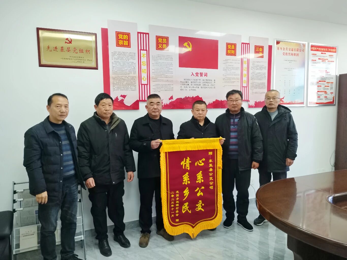 2025年11月25日上午,安徽省池州市東至縣花園鄉(xiāng)桃源村委會支書一行專程來到東至公交公司,送上了一面印有“心系公交 情系鄉(xiāng)民”的錦旗,以此表達對公司多年來堅持運營縣城至桃源村公交線路的誠摯謝意。